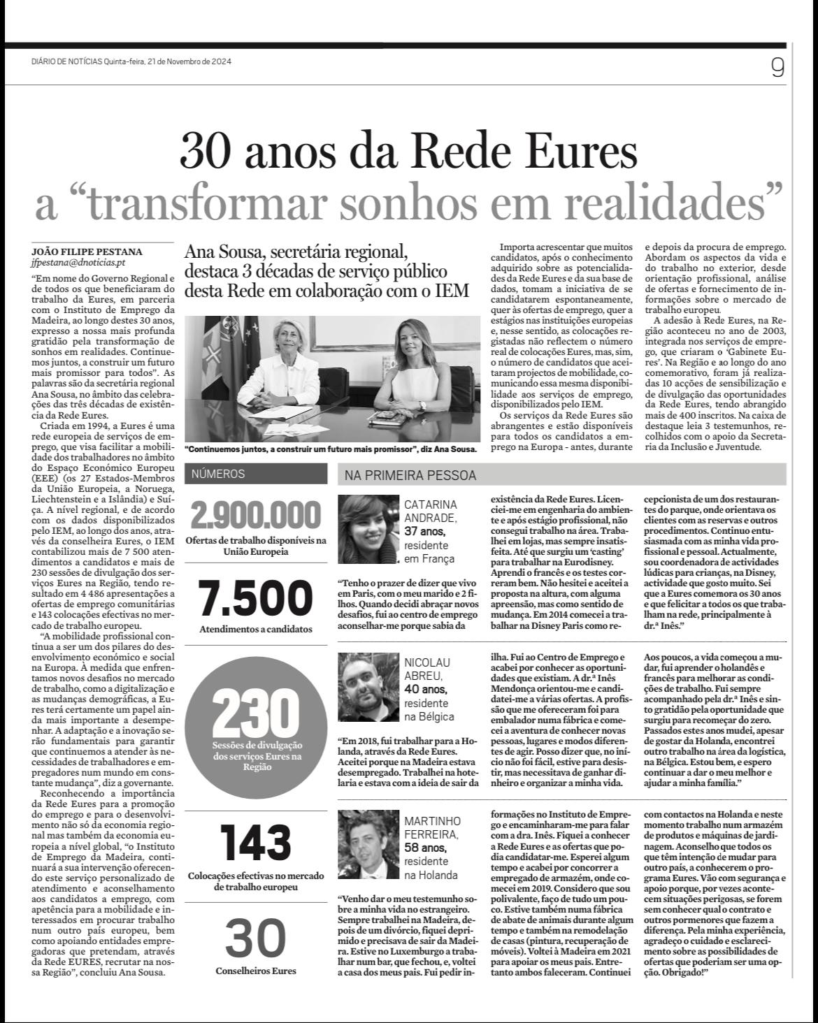 30 Anos de Rede Eures a "transformar sonhos em realidades"