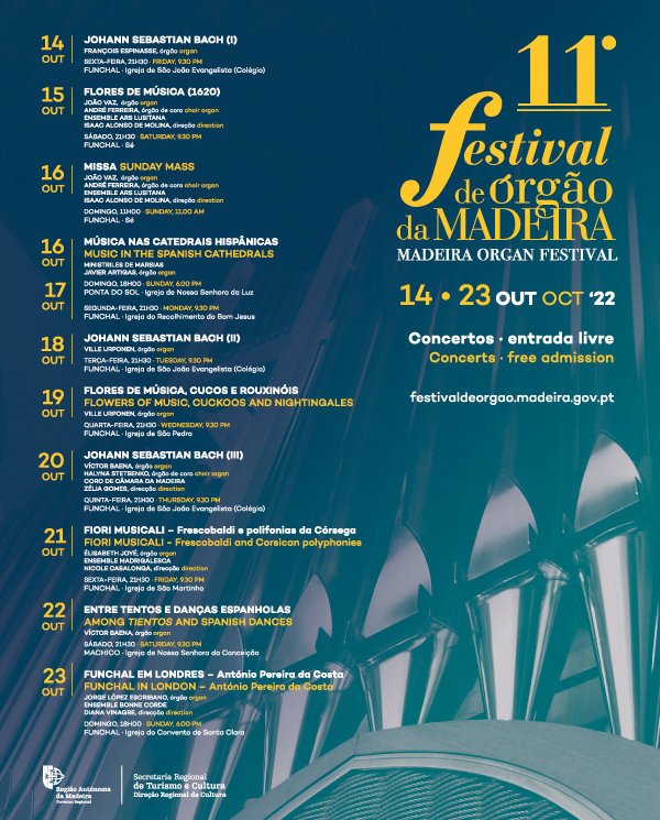Depois de dois anos de interregno, o Festival de Órgão da Madeira, organizado pela Secretaria Regional de Turismo e Cultura, através da Direção Regional da Cultura, regressa em todo o seu esplendor.