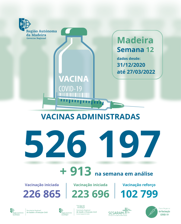 Até ao dia27de marçode 2022 foram administradas na Região Autónoma da Madeira, 526197vacinas contra a COVID-19, desde dia 31 de dezembro de 2020.