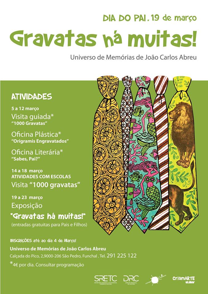 O programa de iniciativas começa já no próximo sábado, sendo que, até ao dia 12 de março decorre a visita guiada sob o tema “1000 gravatas”, a oficina plástica intitulada “Origamis Engravatados” e ainda a oficina literária sob o tema “Sabes, Pai?”. As inscrições nestas iniciativas decorrem até amanhã e têm o custo diário de 4 euros.