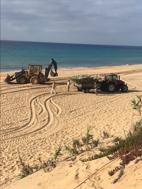 Colocação dos guarda-sóis na praia,para a época balnear 2020