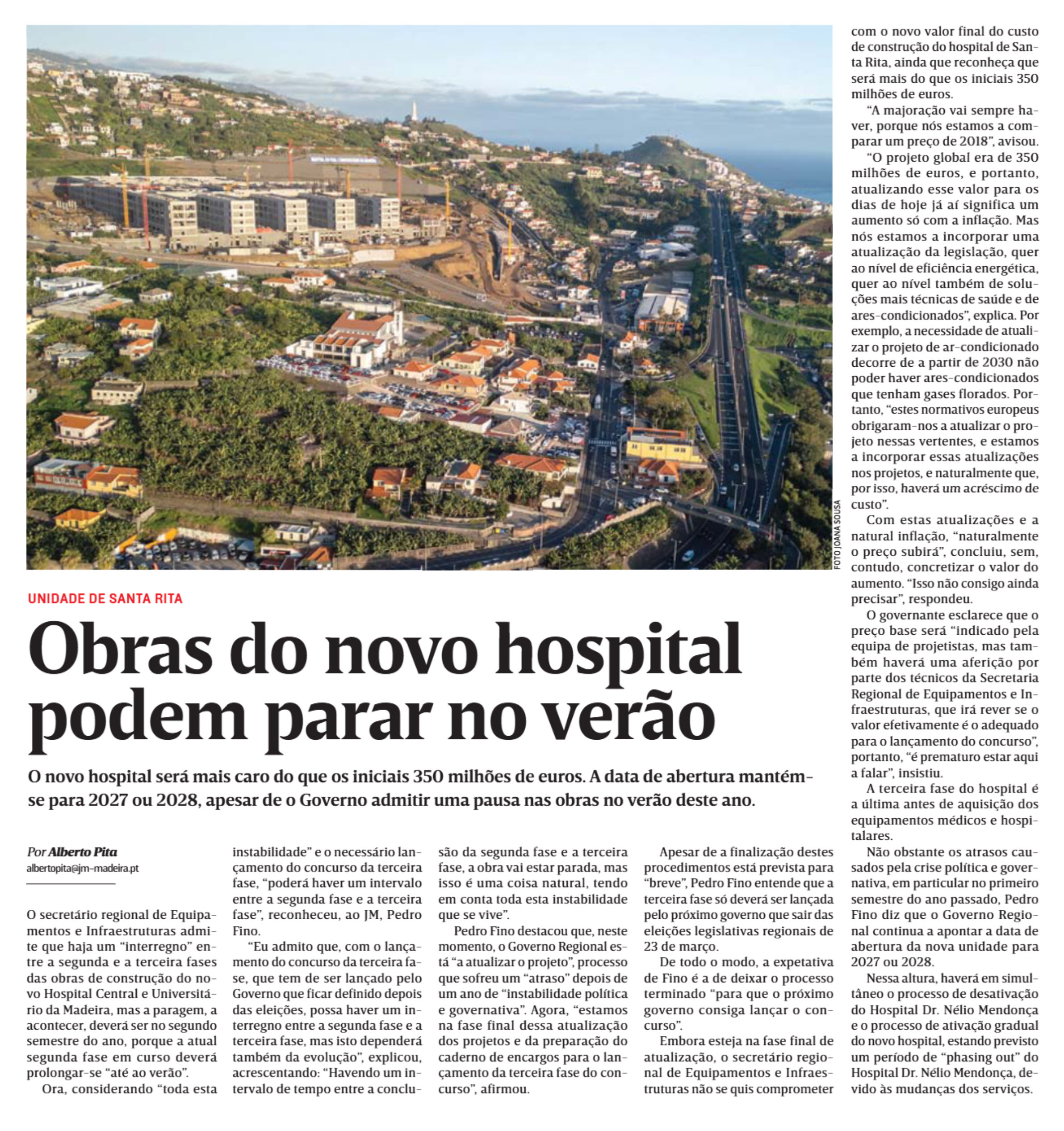 Obras do novo hospital podem parar no verão