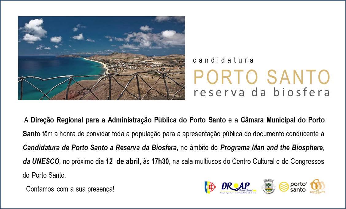 Está disponível para consulta pública a versão preliminar do documento de candidatura do Porto Santo a Reserva da Biosfera. Este documento de carácter evolutivo será, após este período de consulta pública, finalizado e entregue em maio à consideração do Comité MAB (Man and the Biosphere) em Portugal.