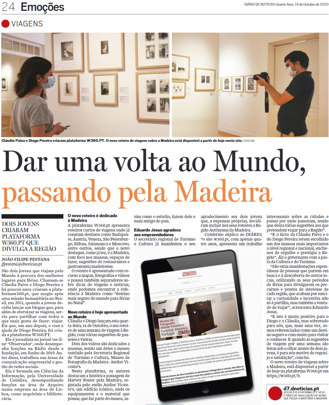 Em declarações ao DN, o Secretário Regional de Turismo e Cultura manifesta seu agradecimento aos dois jovens que, a expensas próprias, decidiram incluir nos seus roteiros a Região Autónoma da Madeira. “O site w360.pt, com apenas quatro anos, apresenta um trabalho interessante sobre as cidades e países por onde passaram, sendo que deixa várias sugestões aos que pretendem viajar para a Região. E o facto da Cláudia Paiva e o do Diogo Pereira terem escolhido um dos museus mais importantes a nível regional e nacional, enche-nos de orgulho e prestigia a Região”.