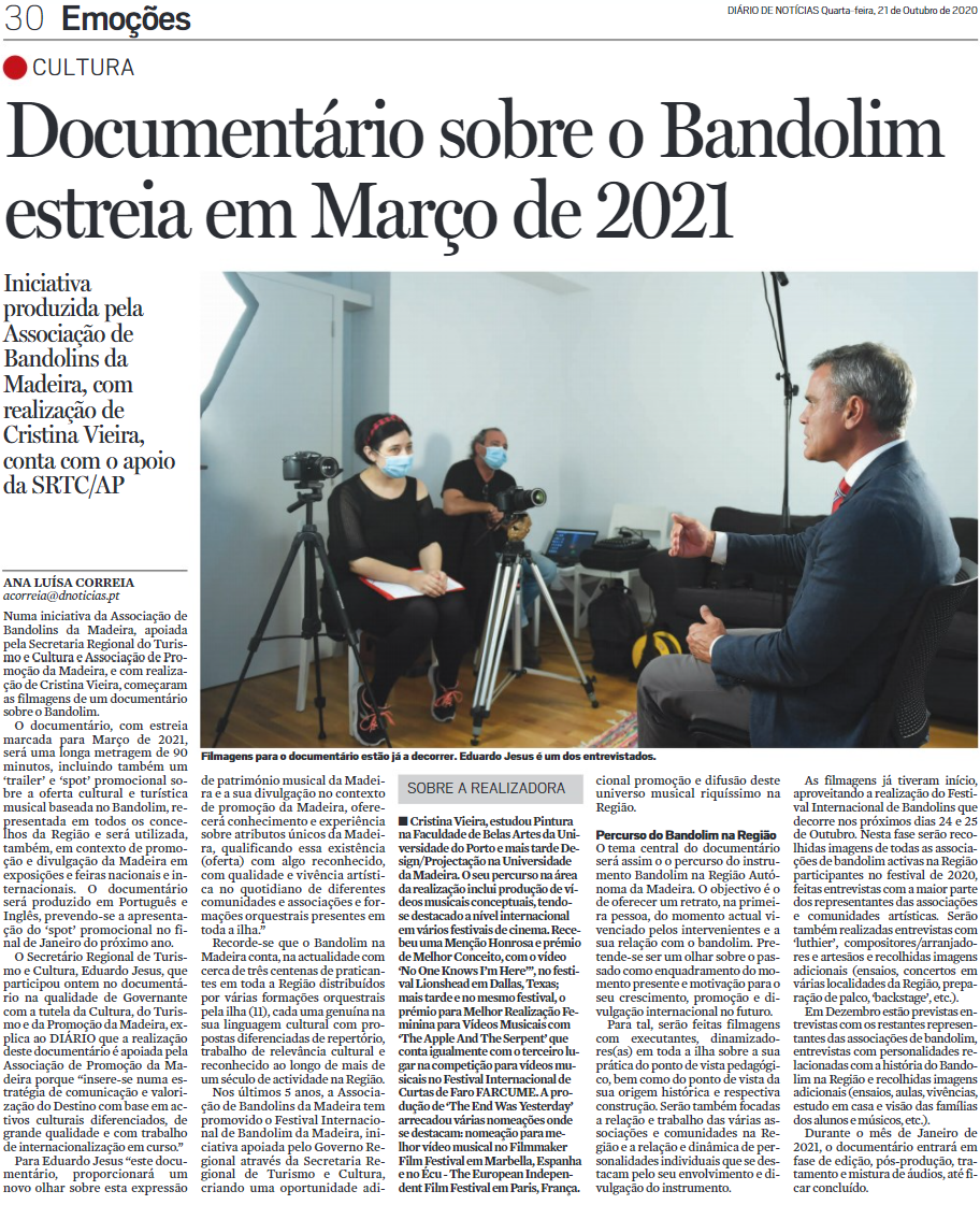 Ao DN, Eduardo Jesus refere na edição de hoje que a realização deste documentário é apoiado pela Associação de Promoção da Madeira, a que preside, porque "insere-se numa estratégia de comunicação e valorização de comunicação e valorização do destino como base em ativos culturais difernciados, de grande qualidade e com trabalho de internacionalização em curso".