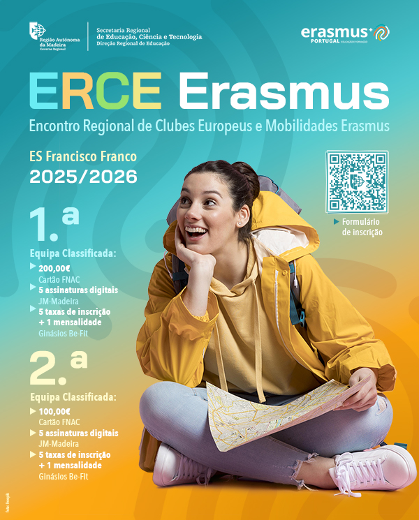 A Secretaria Regional de Educação, Ciência e Tecnologia e a Direção Regional de Educação promovem, no próximo mês de maio de 2026, na Sala de Sessões da Escola Secundária Francisco Franco, o Encontro Regional de Clubes Europeus e Mobilidades Erasmus (ERCE Erasmus).