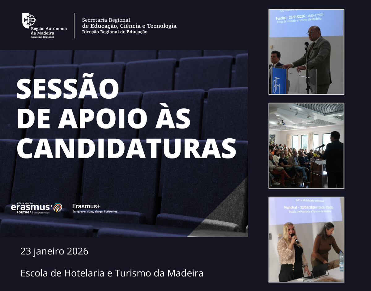 A Agência Nacional Erasmus+ Educação e Formação (EF), em parceria com a Secretaria Regional de Educação, Ciência e Tecnologia e a Direção Regional de Educação, realizou, na Madeira, no passado dia 23 de janeiro, várias sessões de apoio a candidaturas Erasmus+ relativas à Call 2026.