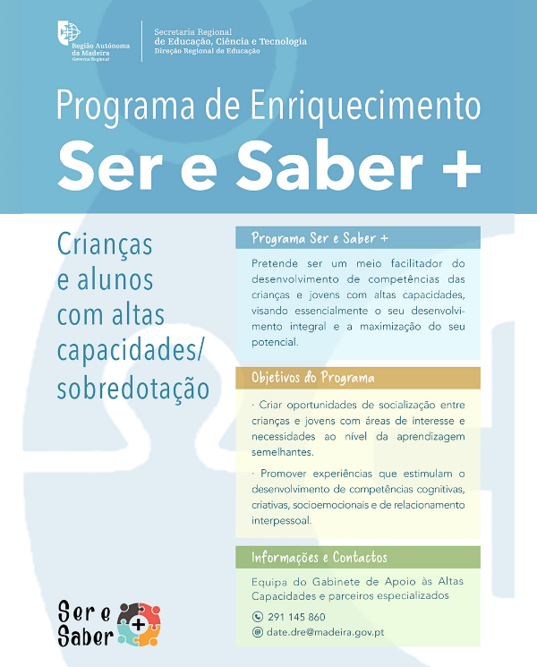 O Programa de Enriquecimento Ser e Saber + destina-se a crianças e alunos com altas capacidades/sobredotação.