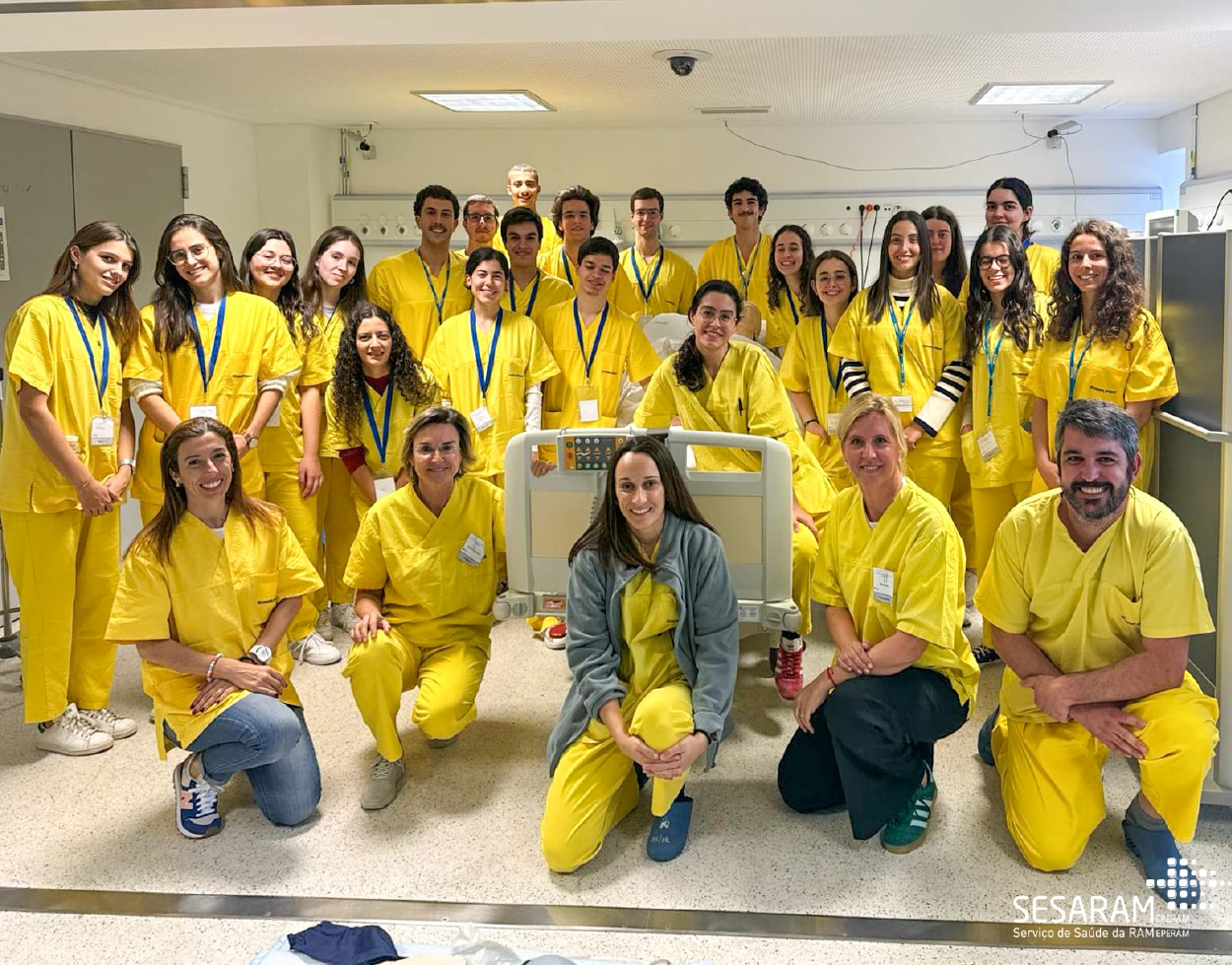 Em prática esteve a reanimação cardiopulmonar, através de técnicas de suporte básico de vida, com adjuvantes da via aérea.
