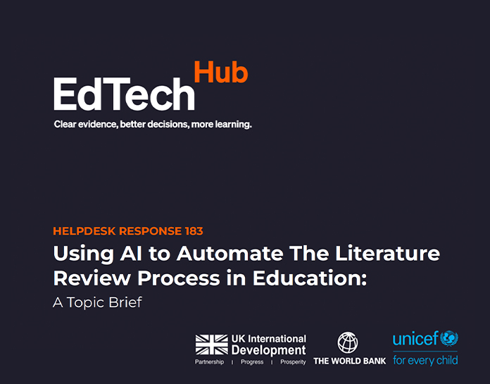 "Systematic literature reviews are often conducted manually in many research organisations. This topic brief explores the use of AI to automate the literature review process in the field of EdTech in order to improve the speed and efficiency of creating literature reviews across the sector. (...)"