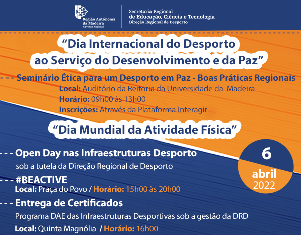 Dia 6 de abril a DRD promove várias iniciativas que assinalam as duas temáticas associadas ao desporto e à atividade física.
