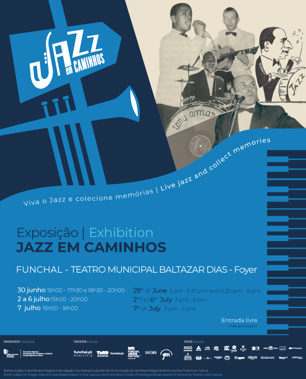 A exposição Jazz em Caminhos traduz-se num convite para uma viagem retrospetiva pela história do jazz na Região Autónoma da Madeira, desde o início do século passado até à atualidade.