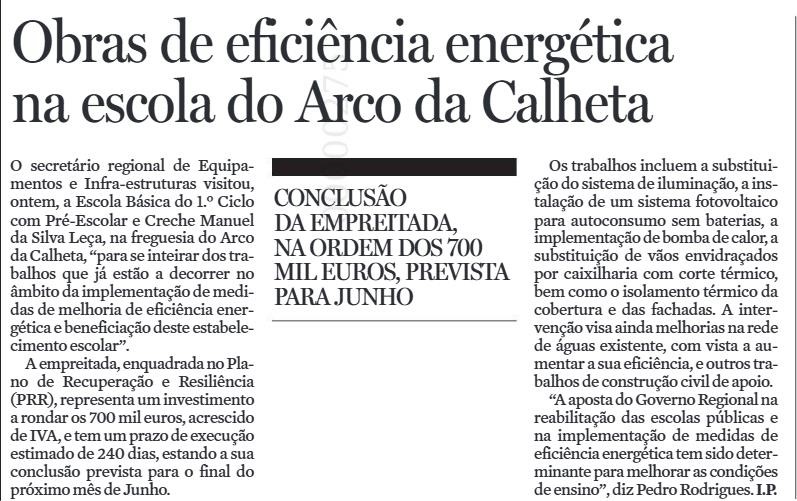 Escola do Arco da Calheta beneficiada com obras de eficiência energética