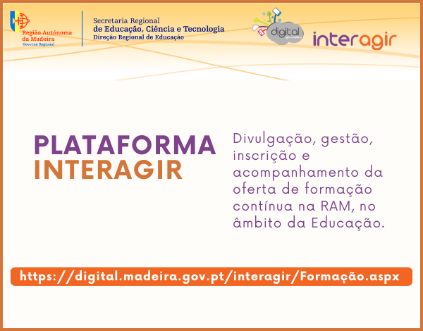 A Plataforma Interagir visa a divulgação, gestão, inscrição e acompanhamento da oferta de formação contínua na RAM, no âmbito da Educação.