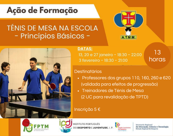 Atividade formativa teórico-prática dirigida aos professores dos grupos 110, 160, 260 e 620 e aos treinadores de Ténis de Mesa.