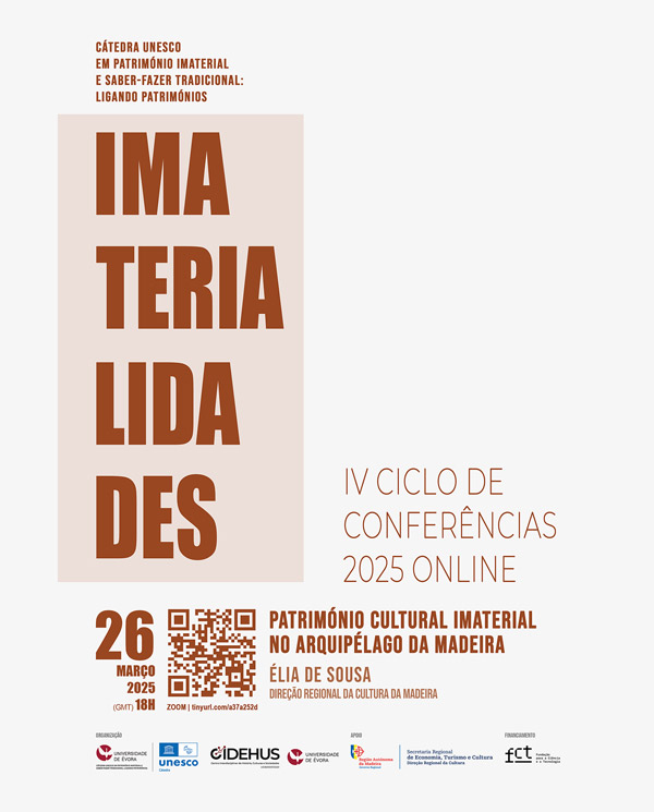 Evento integrado no IV Ciclo de Conferências (online) ‘Imaterialidades’ da Cátedra UNESCO em Património Imaterial e Saber Fazer Tradicional