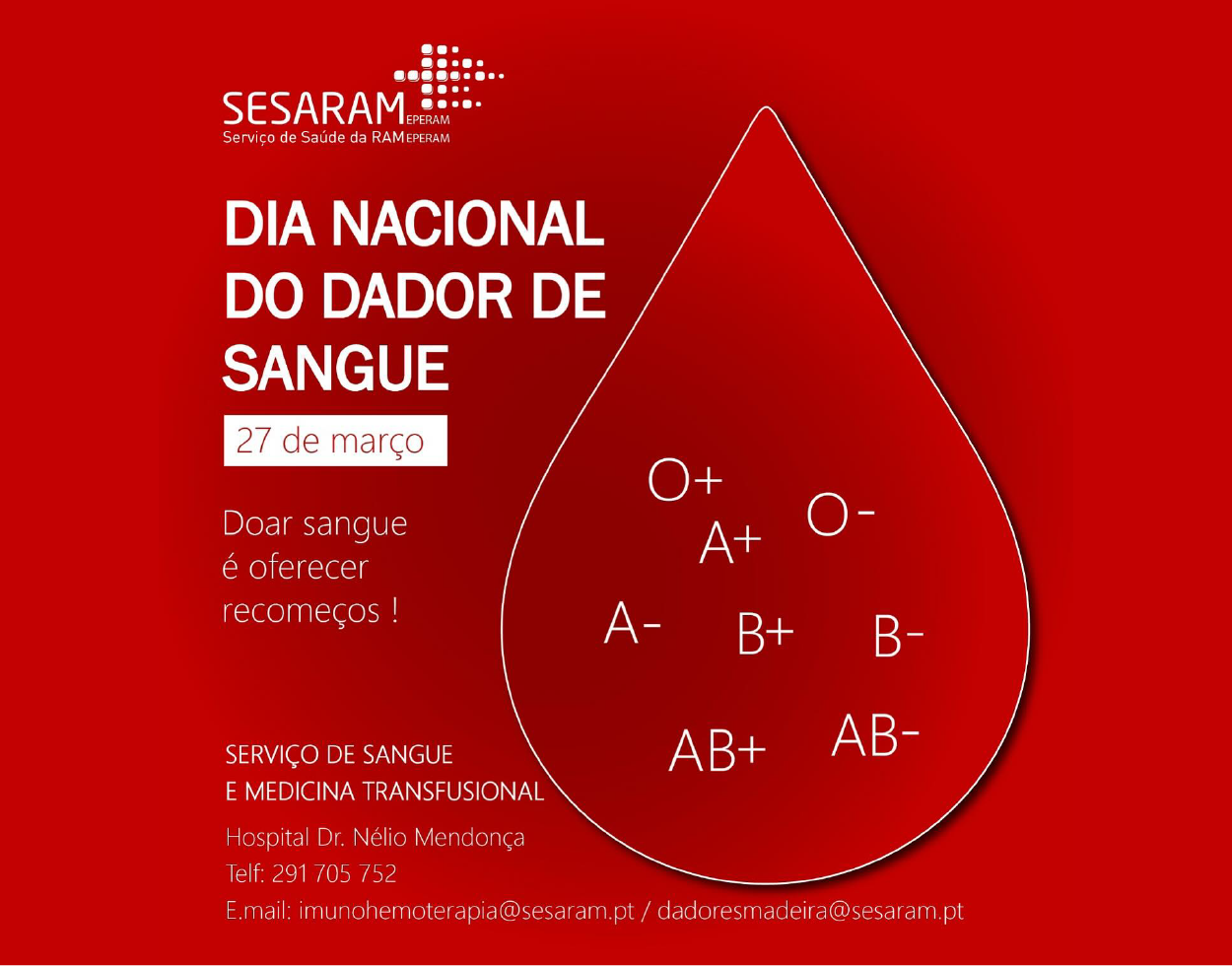 O Dia Nacional do Dador de Sangue é assinalado no sentido de salientar junto da população, o valor social e humano da dádiva de sangue, incentivando a sua prática. As dádivas de sangue são imprescindíveis para o Serviço de Saúde da RAM e o papel dos dadores de sangue é importantíssimo para as unidades de saúde.