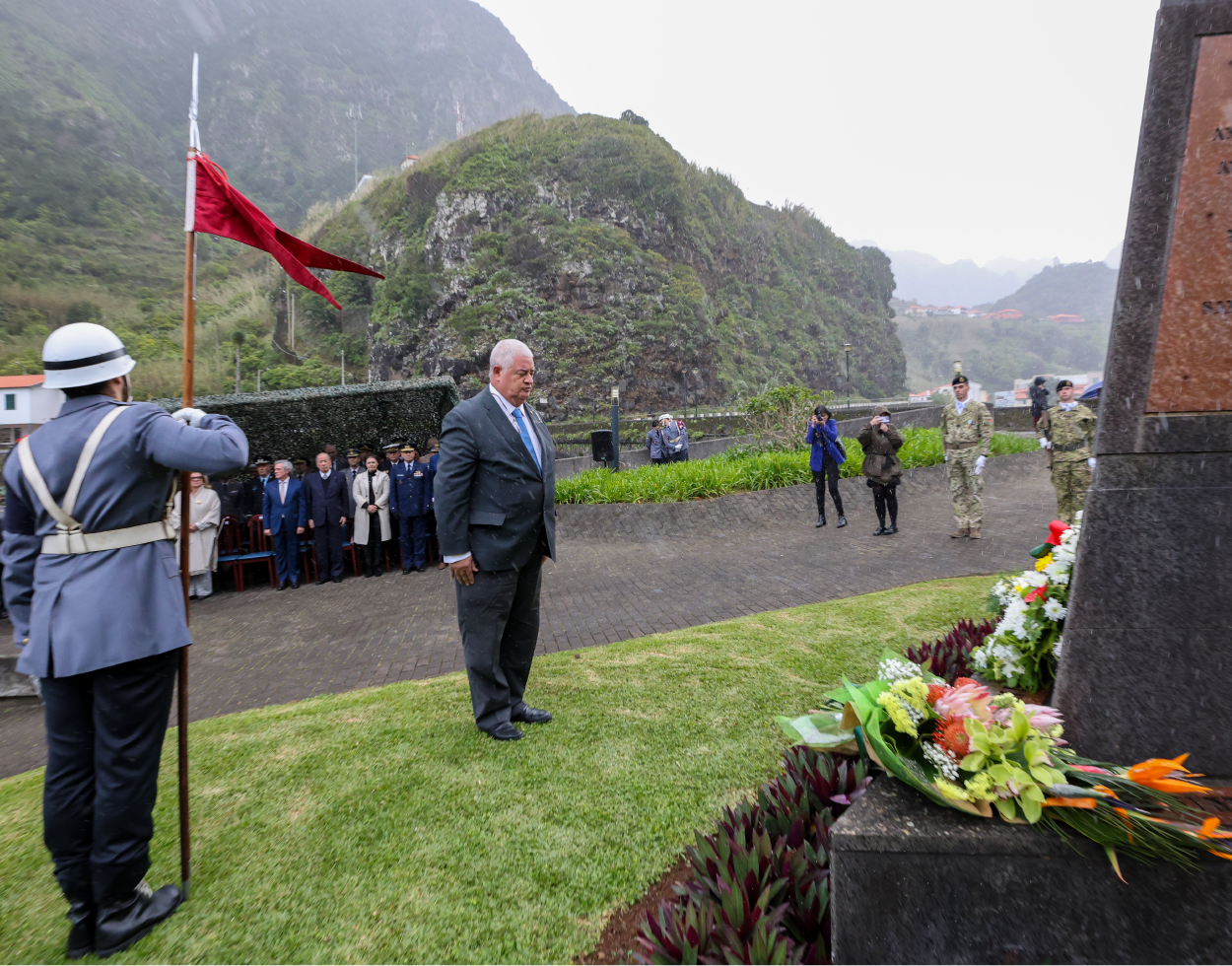 A cerimónia militar com deposição de flores decorreu junto ao Monumento em Honra dos Combatentes Madeirenses do concelho de São Vicente.