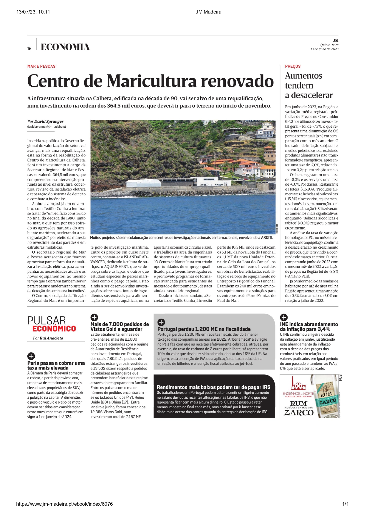 15 horas – Presidente do Governo Regional visita o Centro de Maricultura da Calheta – Calheta