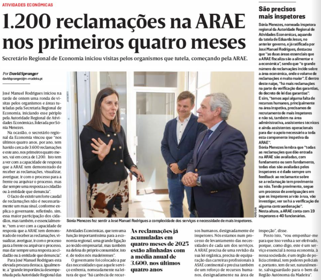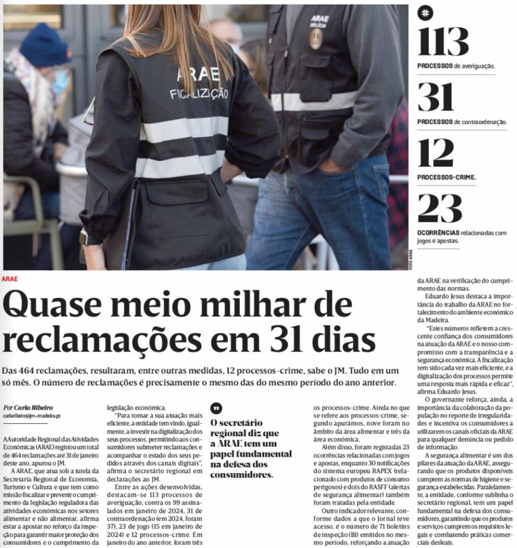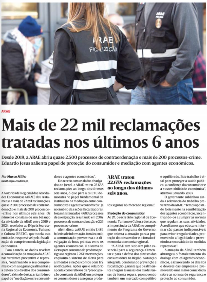 1.200 reclamações na ARAE nos primeiros quatro meses