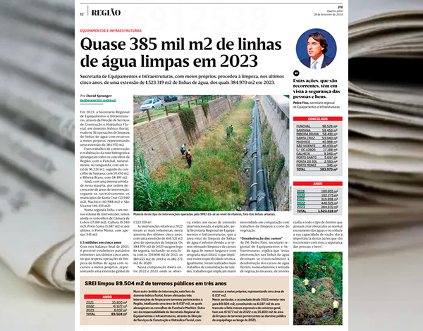 Quase 385 mil m2 de linhas de água limpas em 2023