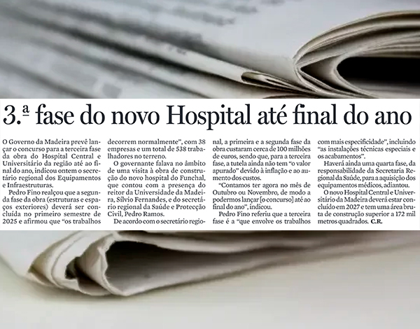 Concurso da 3ª fase do novo hospital ainda este ano