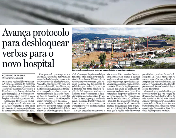 Avança protocolo para desbloquear verbas para o novo hospital