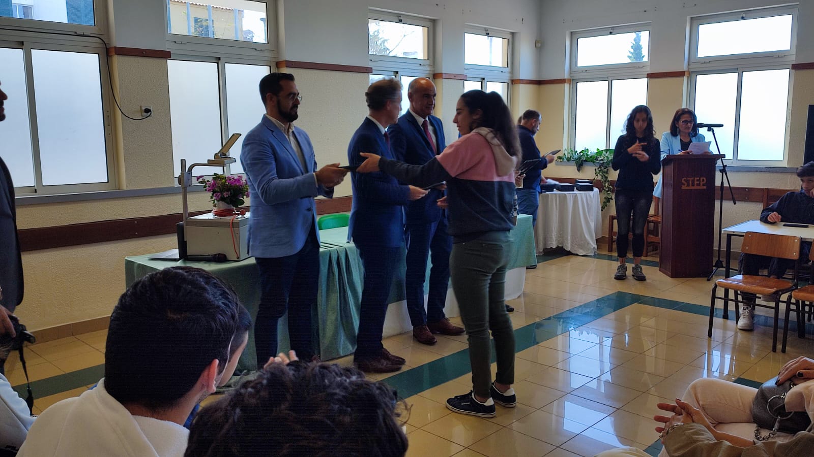 No passado dia 30 de abril, o secretário regional de Educação, Ciência e Tecnologia procedeu à entrega de tablets a 52 formandos do Serviço Técnico de Formação Profissional. Os formandos do 1.º e do 2.º ano das Ações Formativas de Cozinheiro/a (COZ); Mecânico de Serviços Rápidos (MSR); Empregado/a de Mesa (EM); Empregado/a de Andares (EA); e, Operador de Jardinagem (OJ); receberam da mão do senhor secretário os tablets depois de estes serem preparados e configurados com os dados individuais de cada formando, pelos colegas afetos ao “Projeto Manuais digitais”. O secretário da Educação, Ciência e Tecnologia referiu-se a este evento enquadrando-o no processo de transição digital e desenvolvimento, abrangendo toda a sociedade numa perspetiva de inclusão e equidade, de novos caminhos para o sucesso. Fez ainda referência ao STFP como exemplo da Escola Inclusiva que cria igualdade de oportunidades tanto nos projetos de vida como no acesso ao mercado de trabalho.