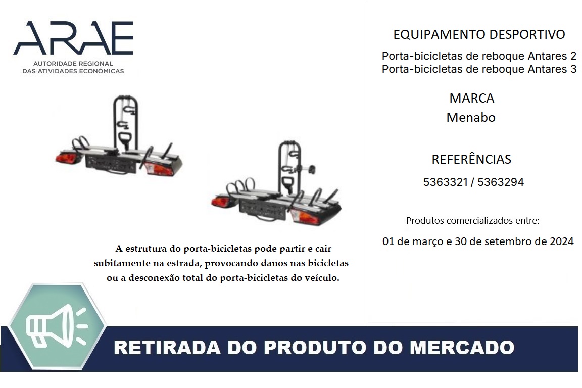 Alerta ARAE – Recolha de Produto – Porta-bicicletas de Reboque da marca MENABO