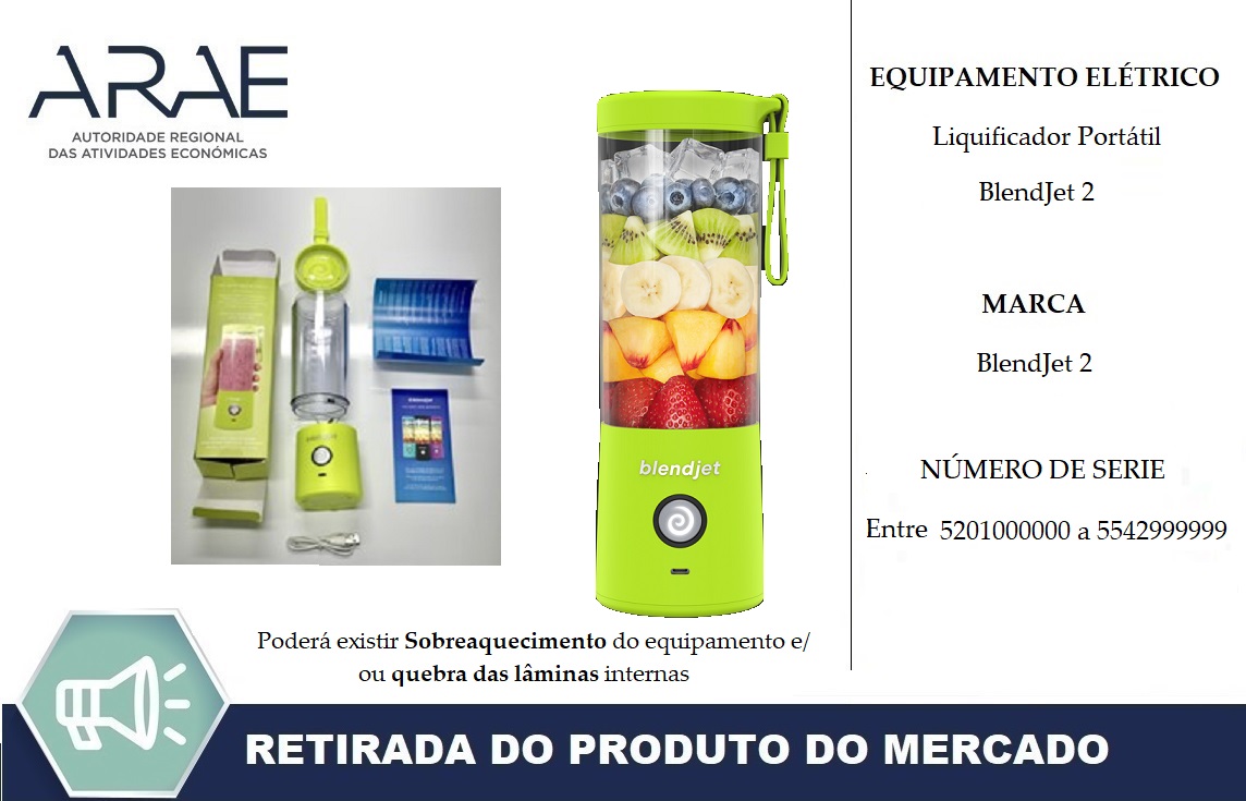 Alerta ARAE – Recolha de Produto - Liquificador portátil – BlendJet 2