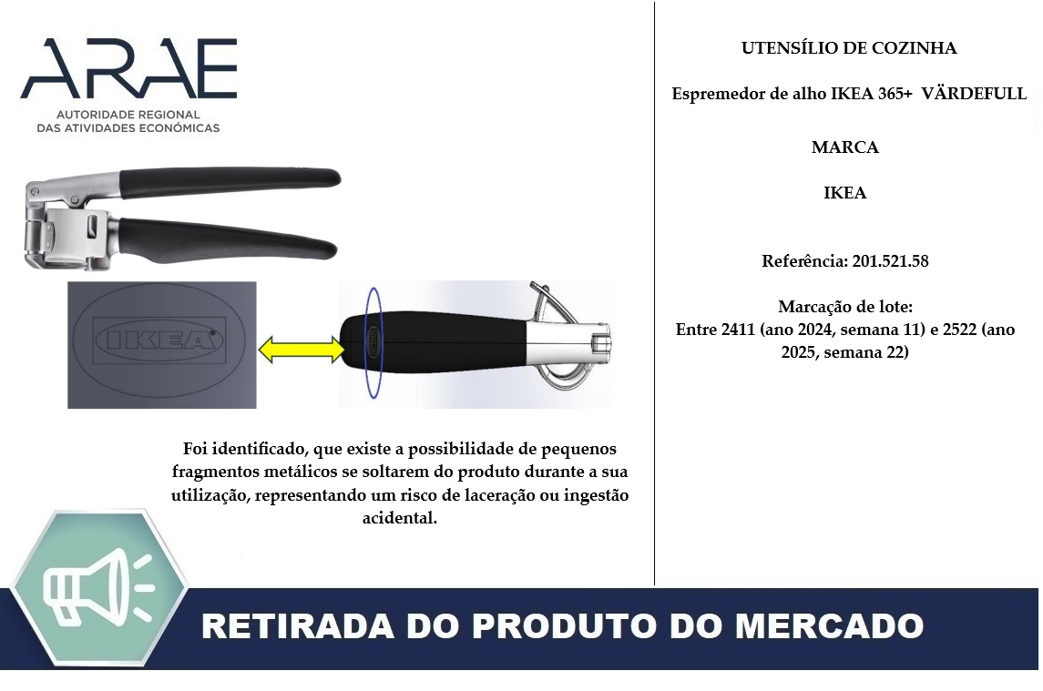 Alerta ARAE – Recolha de Produto – Espremedor de Alho IKEA 365+ VÄRDEFULL