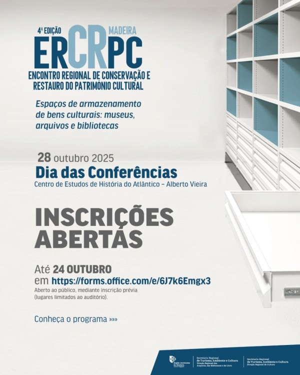 Dia 28 de outubro | Dia das Conferências. Tema deste ano: Espaços de armazenamento de bens culturais: museus, arquivos e bibliotecas. No Auditório do Centro de Estudos de História do Atlântico – Alberto Vieira.