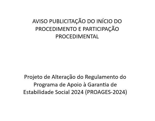 Projeto de Alteração do Regulamento do Programa de Apoio à Garantia de Estabilidade Social 2024 (PROAGES-2024)