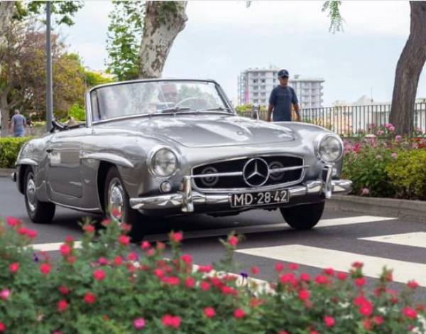 O Mercedez-Benz 190 SL, de 1955, com a matrícula MD-28-42, pertence a Gil Canha.