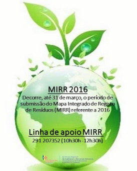 NOVA DATA: Até 15 de abril, encontra- se aberta o período de submissão do Mapa Integrado de Registo de Resíduos (MIRR) referente ao ano de 2019.