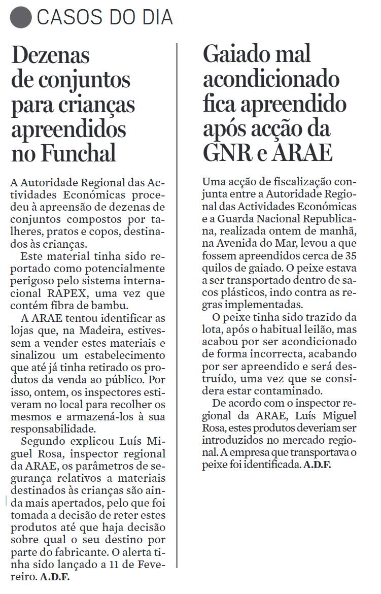 ARAE desenvolve anualmente acão de fiscalização no âmbito da Black Friday Diário de Notícias da Madeira, edição de 26/11/2022