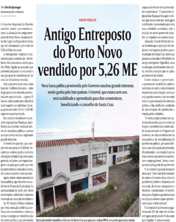 Antigo Entreposto do Porto Novo vendido