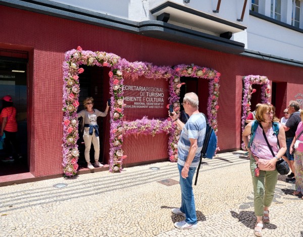Portadas floridas da SRTAC na Avenida Arriaga conquistam olhares e máquinas fotográficas dos turistas
