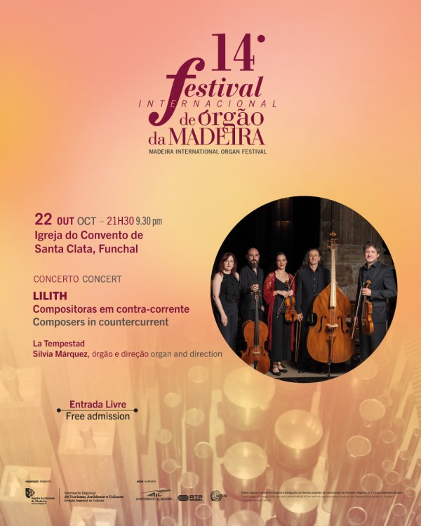 Dia 22 outubro | 21h30. Igreja do Convento de Santa Clara do Funchal. Considerado como um dos mais relevantes grupos espanhóis no campo da interpretação historicamente informada, La Tempestad, dirigido pela organista e cravista Silvia Márquez, apresenta uma panorâmica da atividade de mulheres compositoras (algumas delas, organistas) desde o século XVI ao século XVIII.