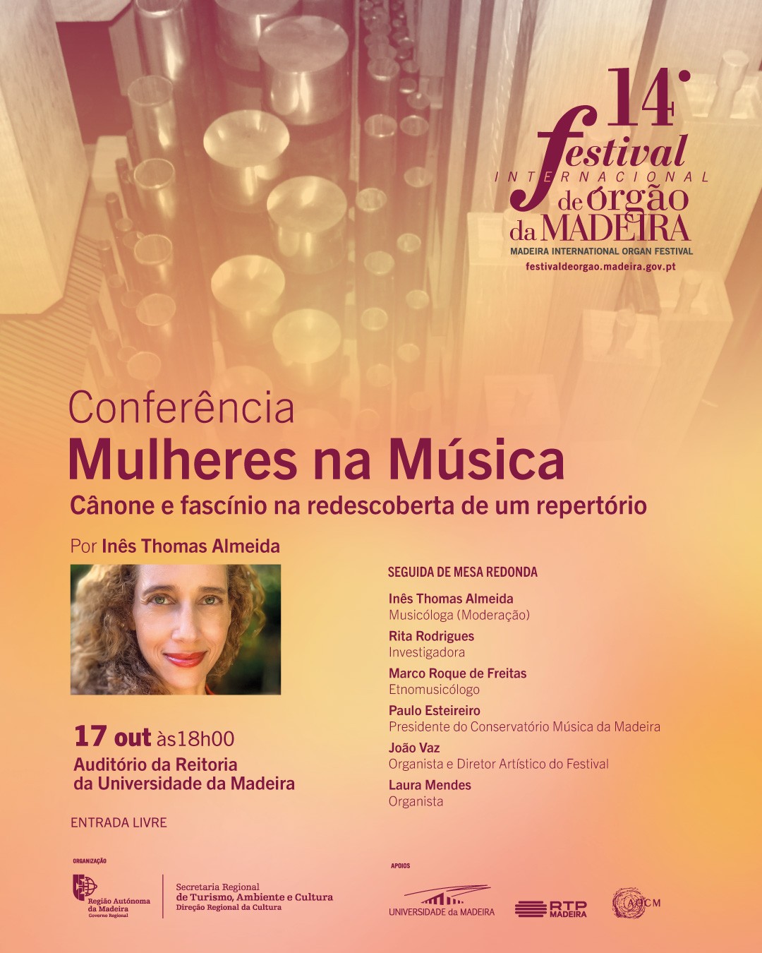 Integrada no 14.º Festival Internacional de Órgão da Madeira. Dia 17 outubro pelas 18h00. Auditório da Reitoria da Universidade da Madeira, Funchal.