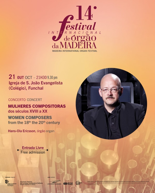 Dia 21 outubro | 21h30. Igreja de São João Evangelista (Colégio), Funchal. Hans-Ola Ericsson, órgão. Concerto integrado na 14.ª edição do Festival de Órgão da Madeira.