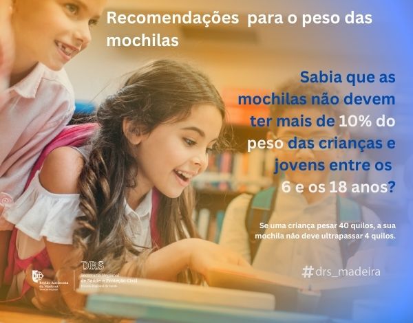 As mochilas não devem ter mais de 10% do peso corporal das crianças/jovens.