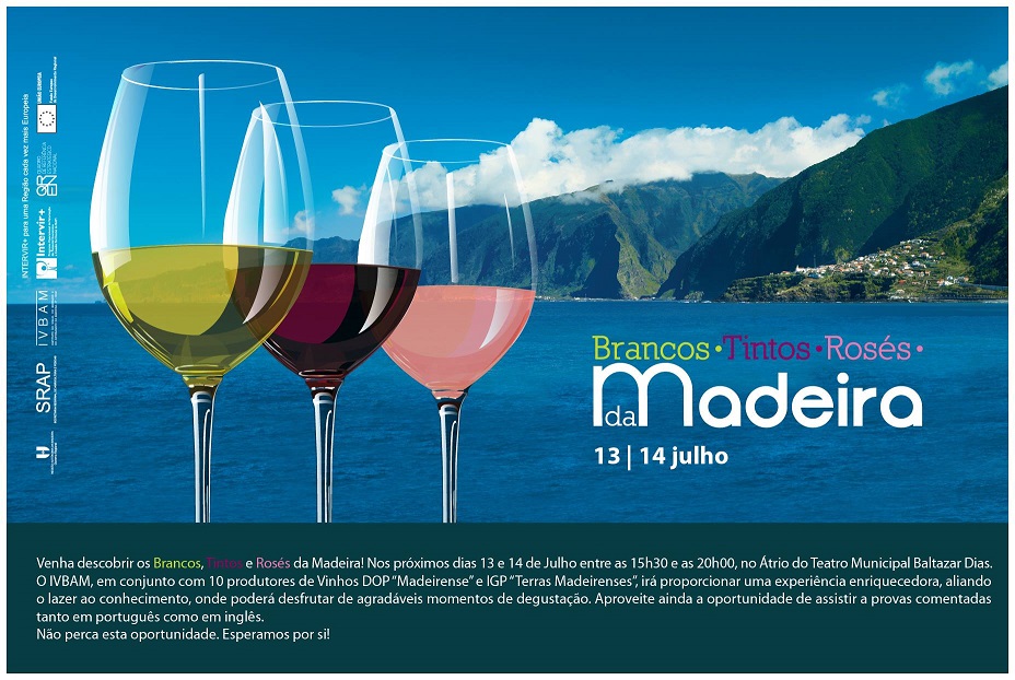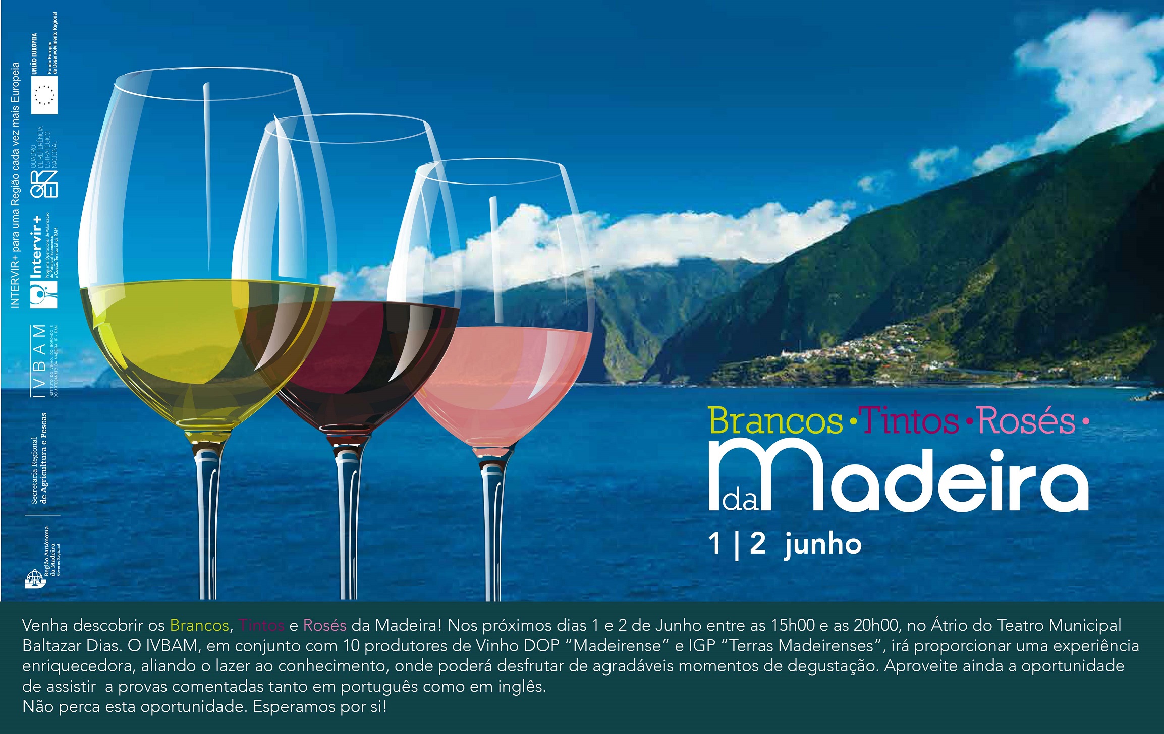 Provas de Vinhos Brancos, Tintos e Rosés da Madeira, nos próximos dias 1 e 2 de Junho, entre as 15h00 e as 20h00, no Átrio do Teatro Municipal Baltazar Dias.