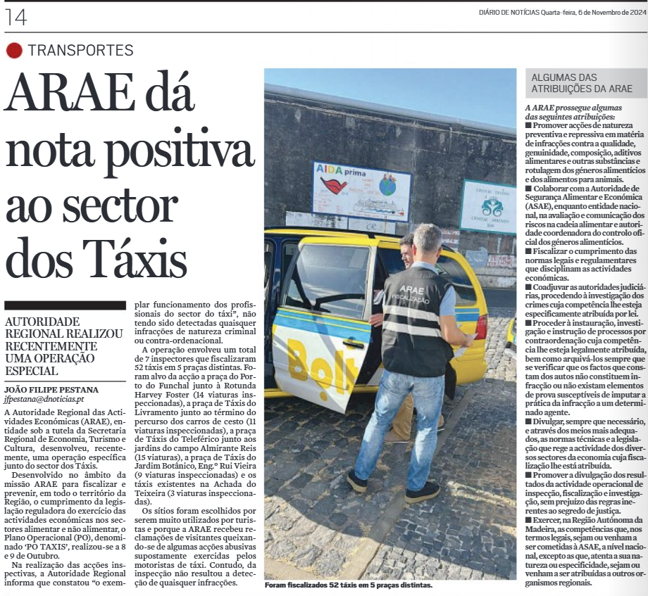 ARAE dá nota positiva ao sector dos Táxis