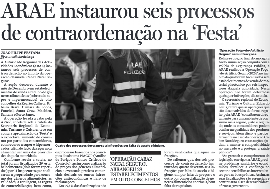 ARAE desenvolve anualmente acão de fiscalização no âmbito da Black Friday Diário de Notícias da Madeira, edição de 26/11/2022