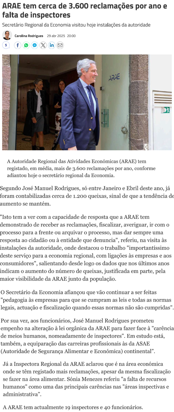 Uma informação avançada pelo inspetor Regional das Atividades Económicas. Luís Miguel Rosa participou numa ação de sensibilização promovida pela Câmara Municipal do Funchal, em parceria com a ARAE e a Autoridade Tributária.