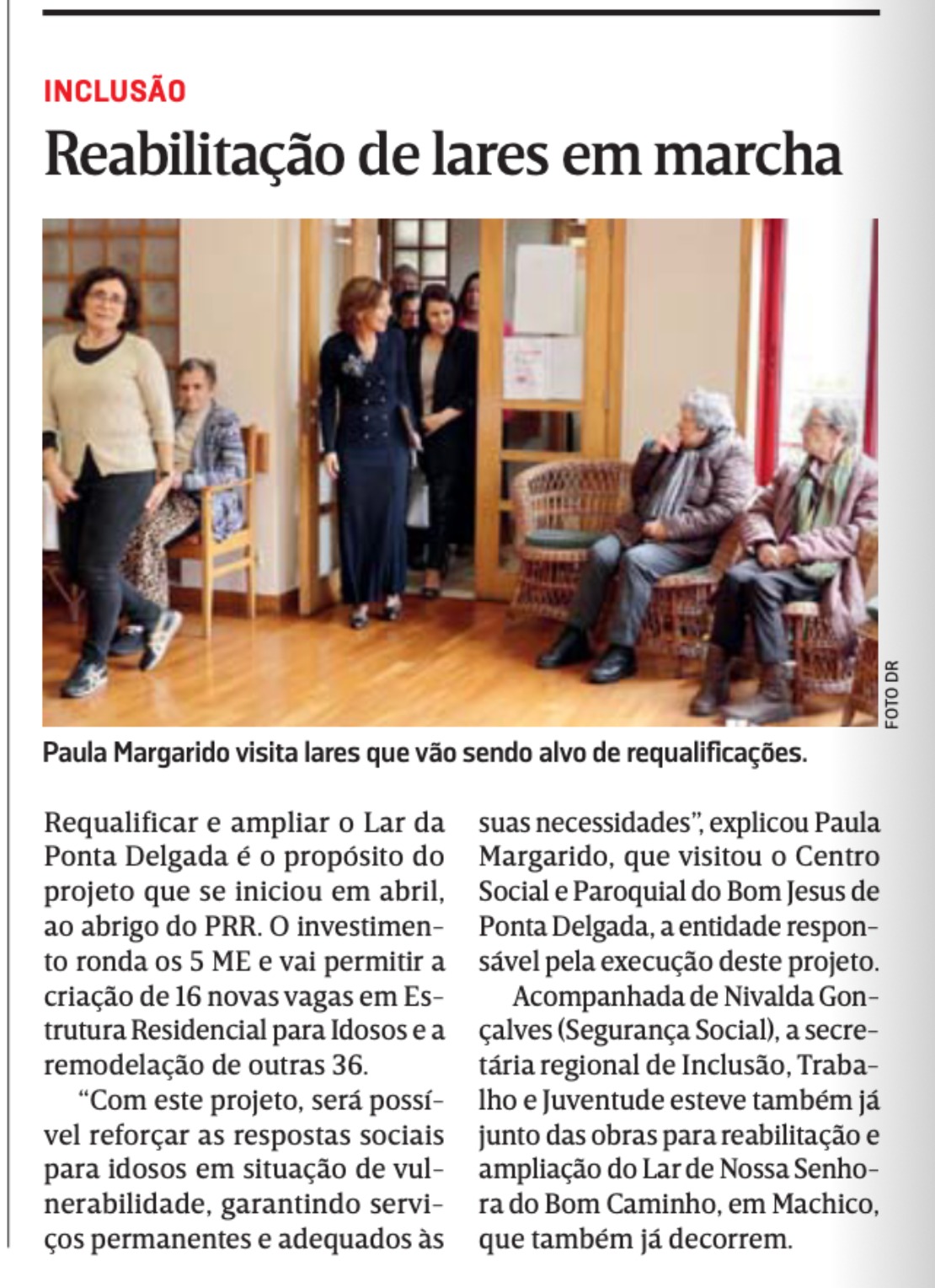 “O projeto vai reforçar significativamente a capacidade de resposta social desta estrutura direcionada para a população idosa, mediante a disponibilização de cuidados permanentes e ajustados às suas necessidades”, afirma Paula Margarido, secretária regional de Inclusão, Trabalho e Juventude.