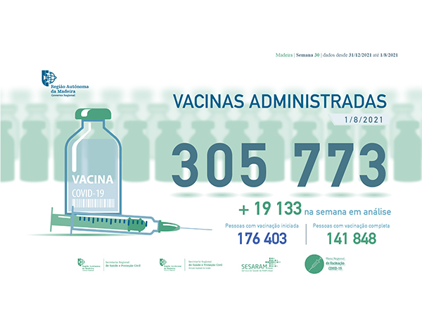 Do número total de vacinas administradas (305 773), 176 403 correspondem a administração da primeira dose e 141 848 doses correspondem à vacinação completa. Isto significa que 56% da população residente tem já a vacinação completa e 69% vacinação iniciada.