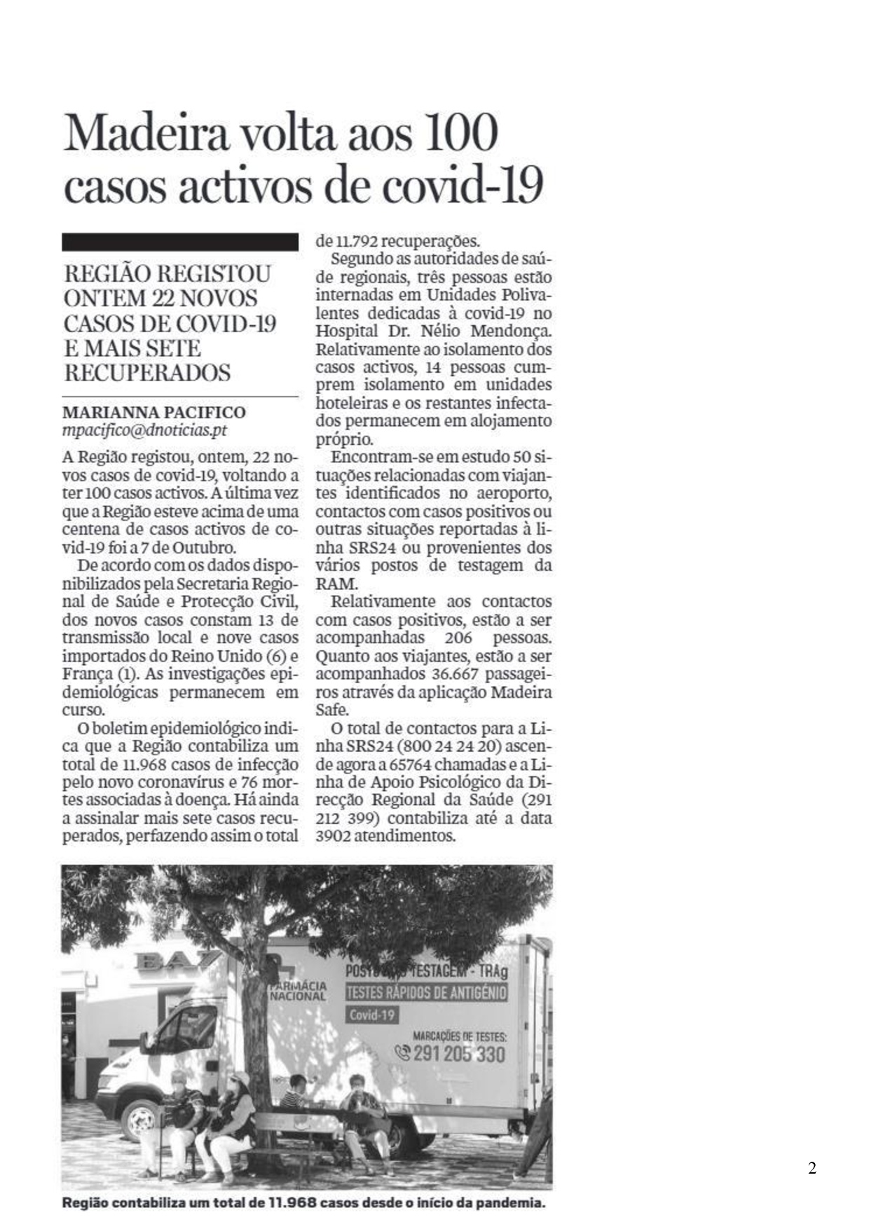 Imprensa: Diário de Notícias - Madeira, de 25.10.2021