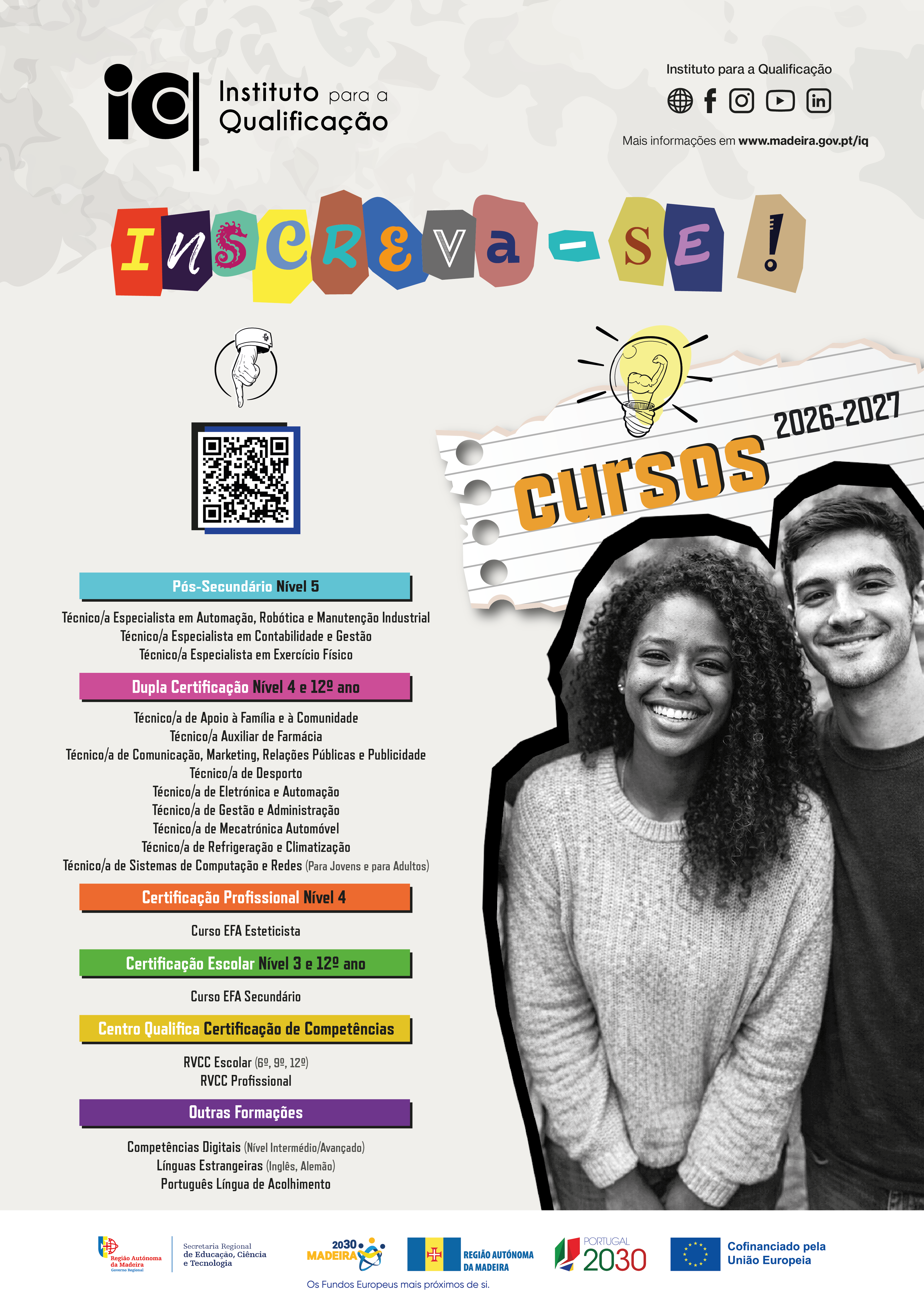 As inscrições para os cursos do Instituto para a Qualificação já estão abertas. Aceda ao Portal Simplifica e inscreva‑se na oferta formativa 2026/2027.